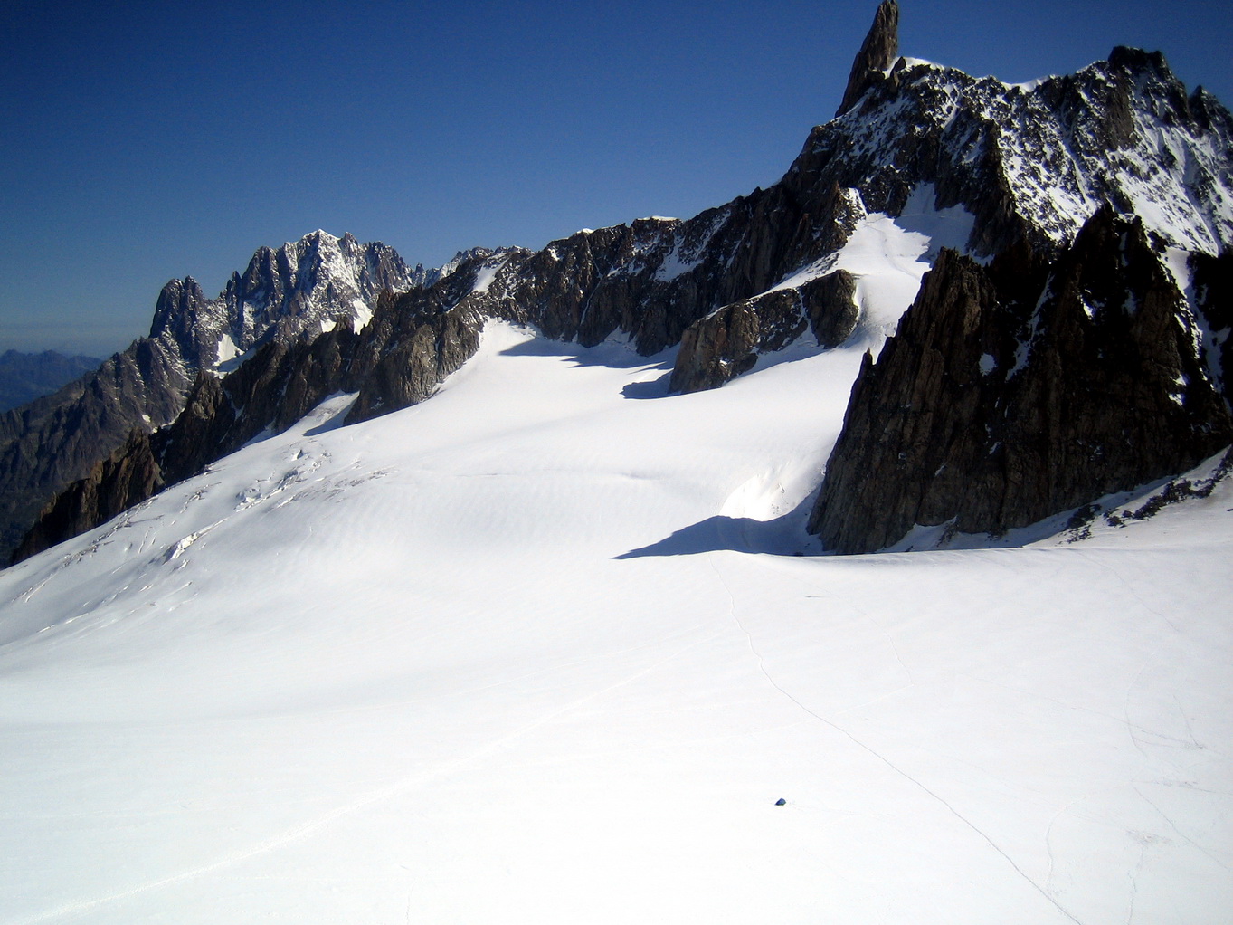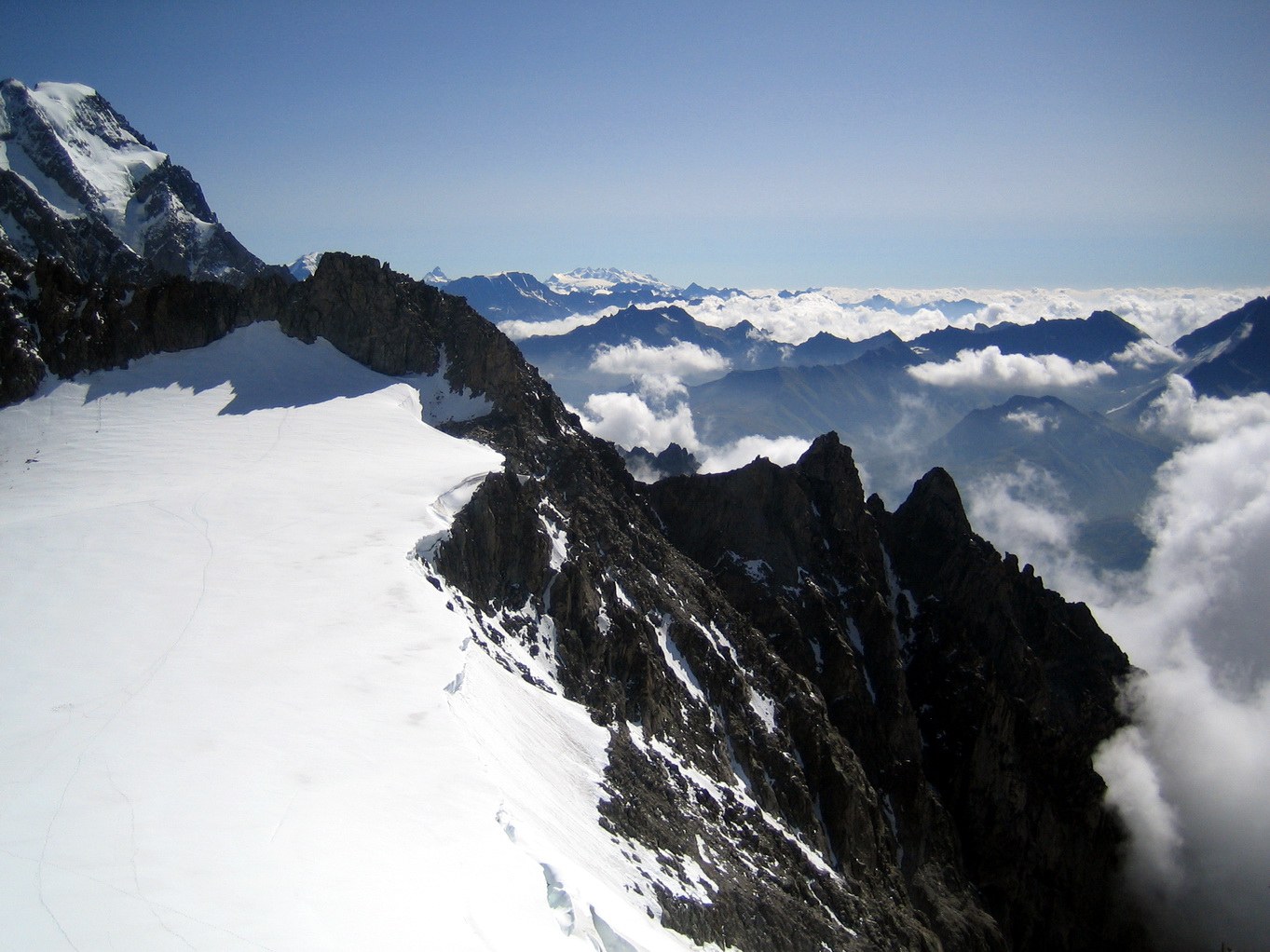 Это снято с вершины, почти на 1000м ниже Монблана