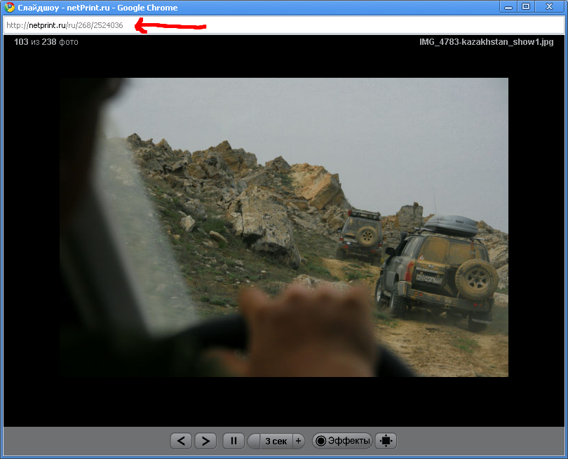 Откроется новое окно, в котором надо скопировать в буфер обмена http адрес слайдшоу: