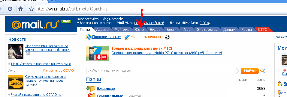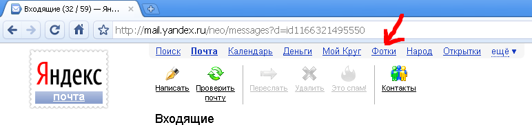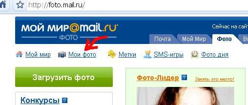 а потом - ссылку "Мои фотки"
