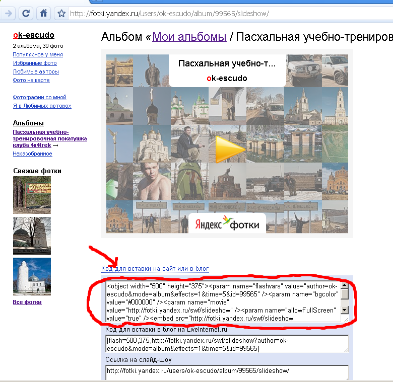 Слайдшоу на Яндекс Фотках