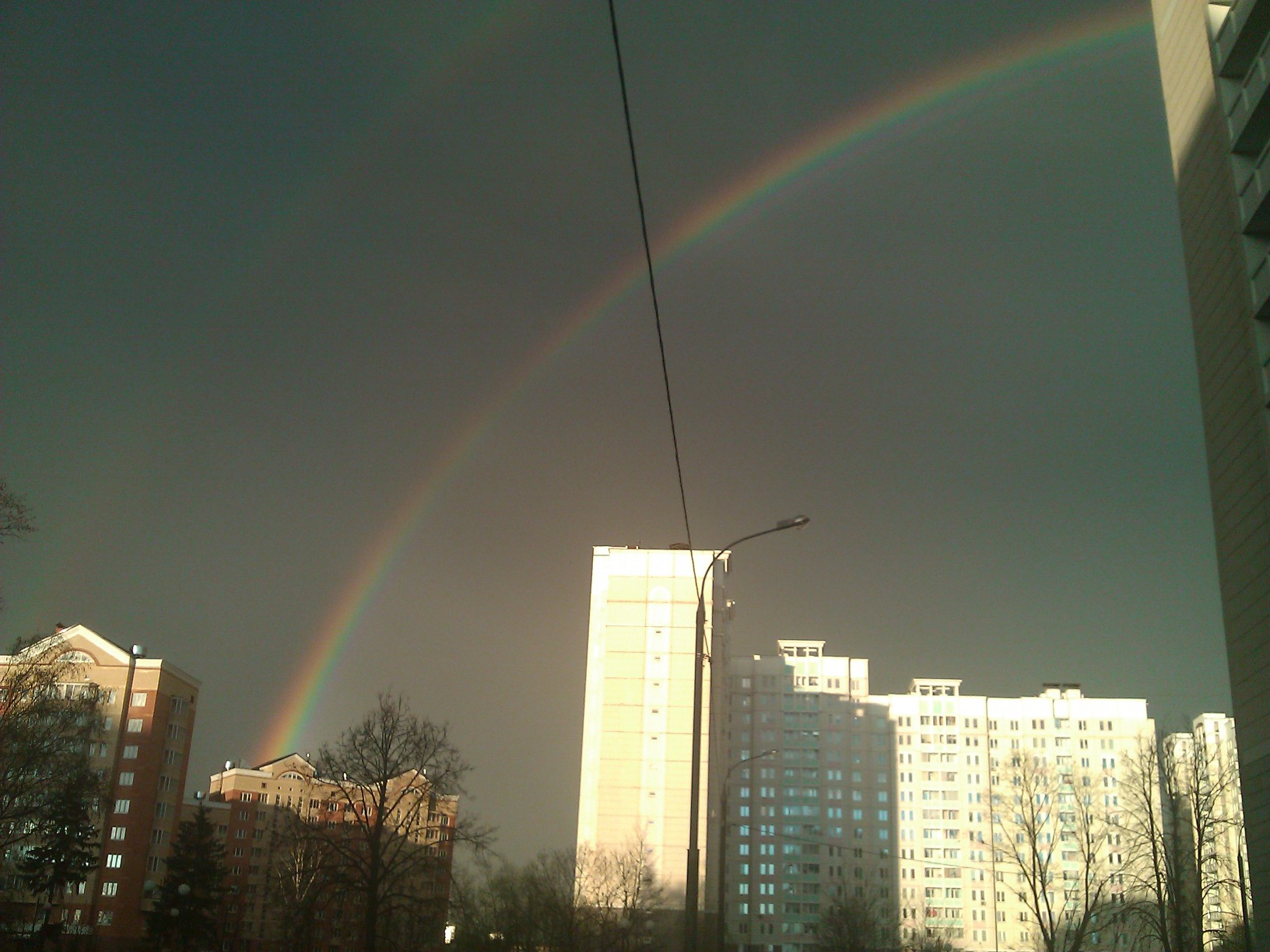 А у меня сегодня в Зеленограде вот такое было. Заснял на мобильник. Если приглядеться, то радуга двойная. Как говориться: После дождечка в четверг. :nlol: