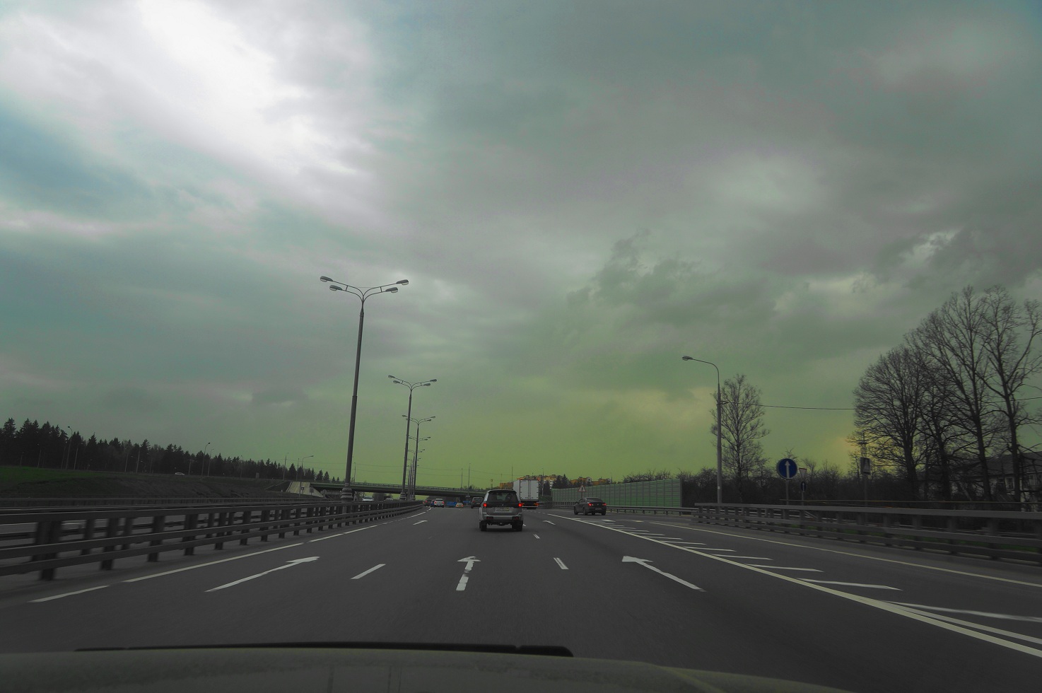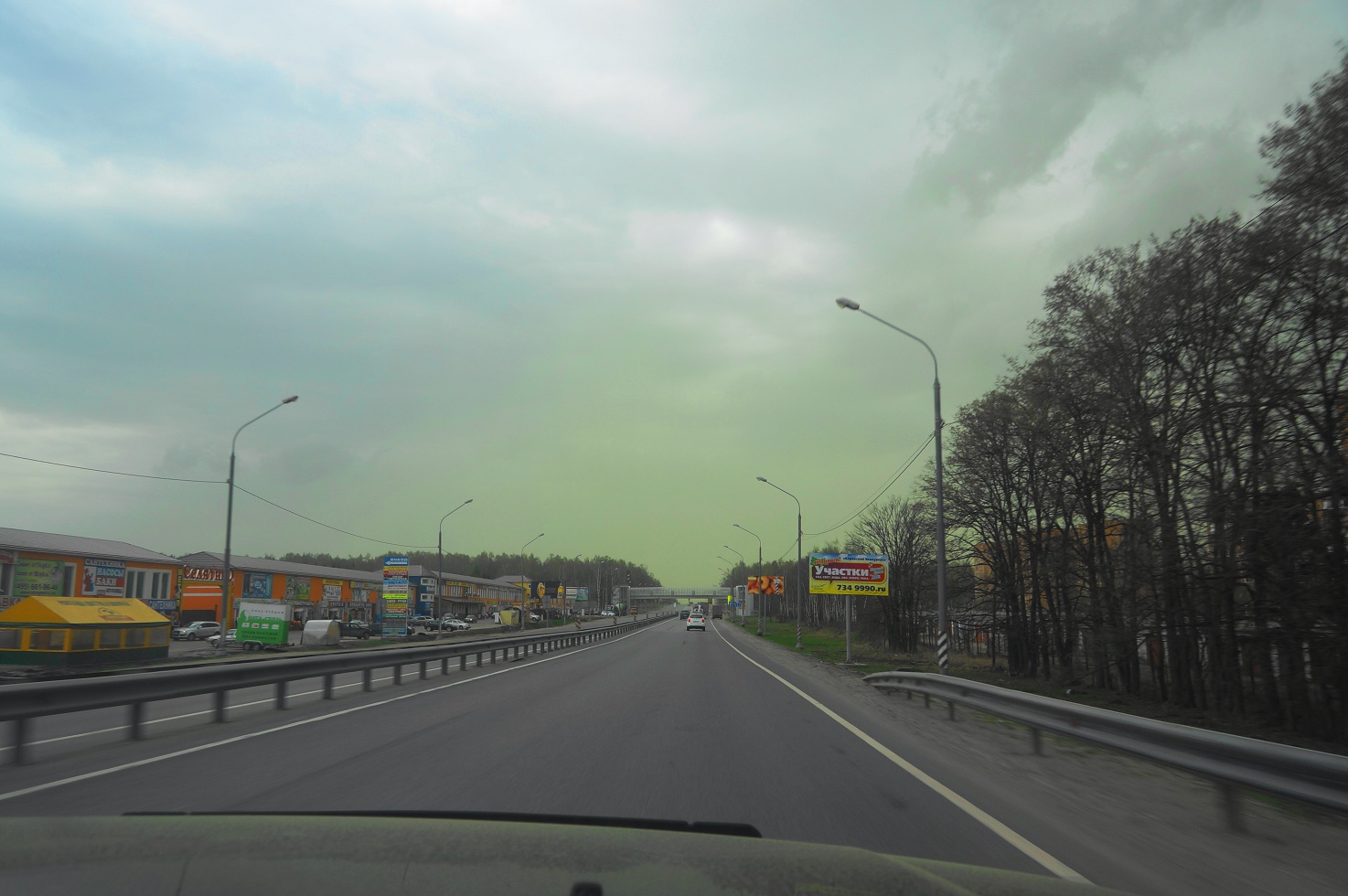 Мы как раз ехали по киевской трассе из Москвы. Вот что было в небе у Апрелевки, не пересечении с бетонкой.