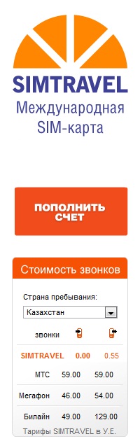 В представленной ниже таблице Вы можете узнать сколько стоит роуминг тарифы от SIMTRAVEL, стоимость звонков указана в у.е. с учетом всех налогов (стоимость звонков в роуминге):