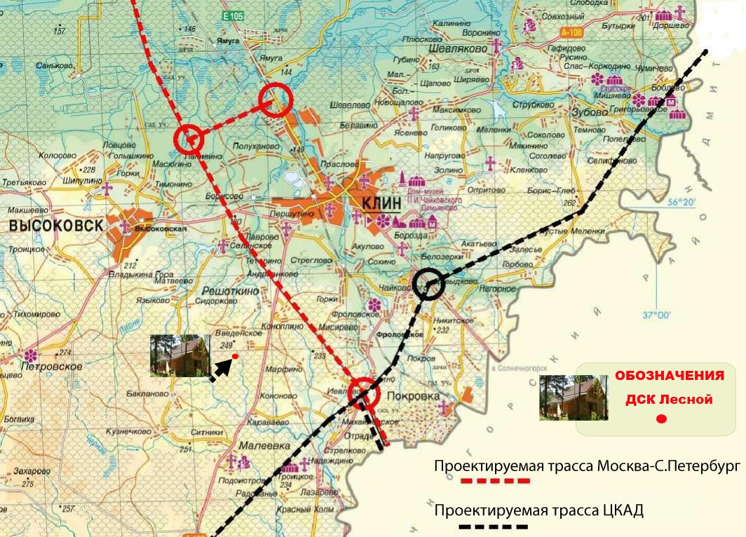 * Перспективность месторасположения. Новая трасса Москва – Санкт-Петербург пройдёт в 6-ти километрах от посёлка (решение о начале строительства трассы в 2010 году обнародовано МинТрансом). То есть по окончанию строительства автобана доехать до дачи от МКАД можно будет за 35-40 минут.